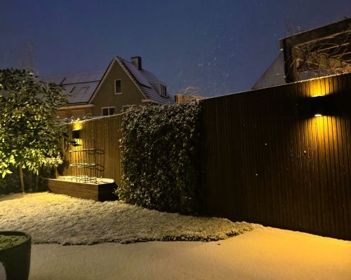 "Erg blij met onze Iplux Milano wandlampen. Ze geven mooi sfeervol licht aan onze schutting en werken zelfs onder besneeuwde omstandigheden".