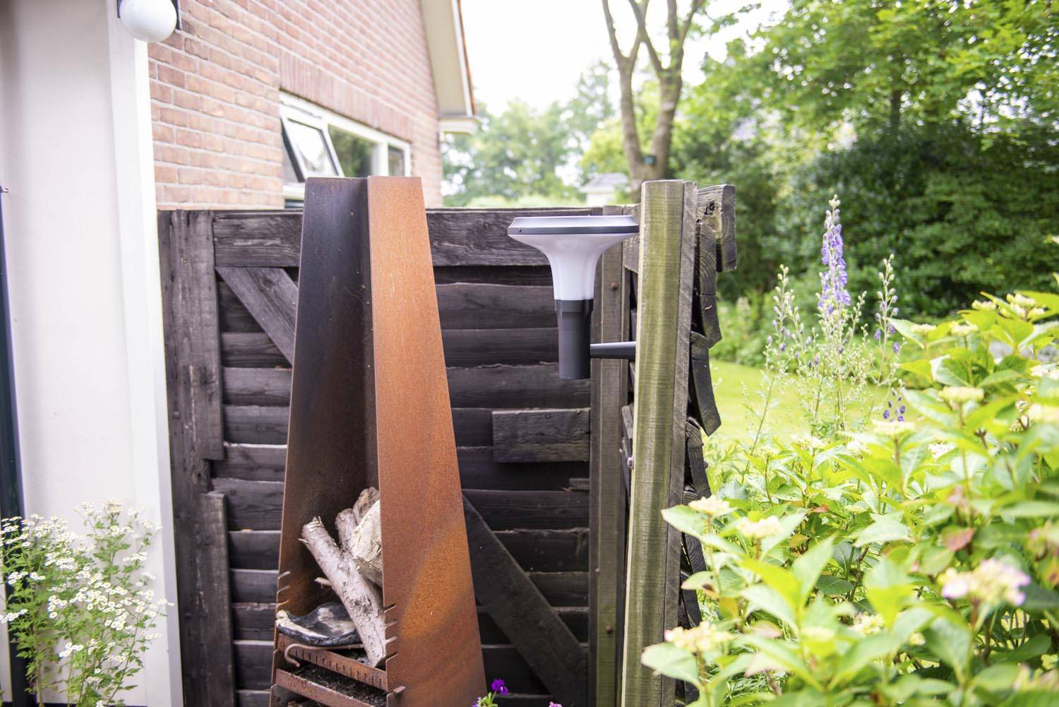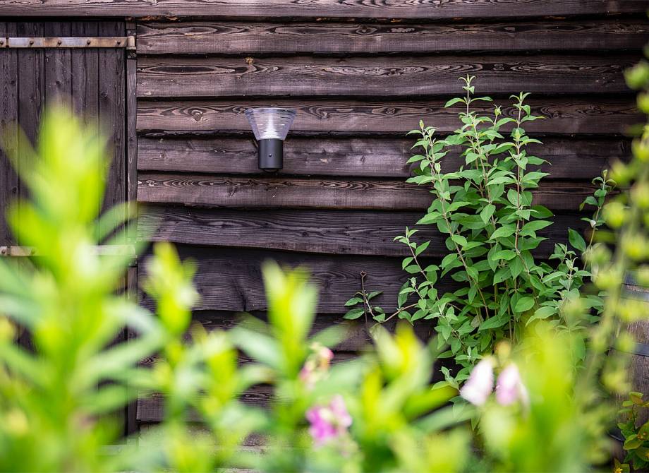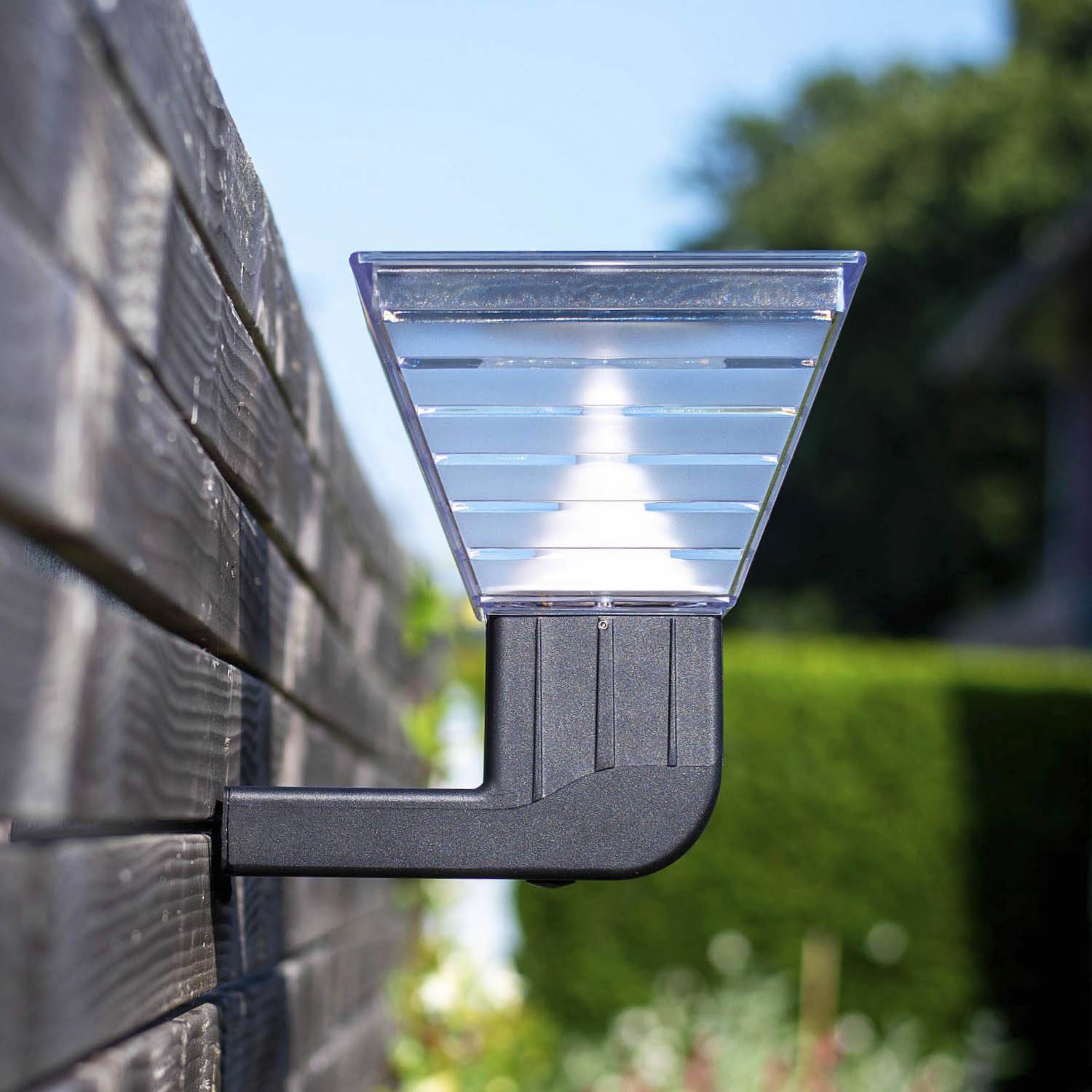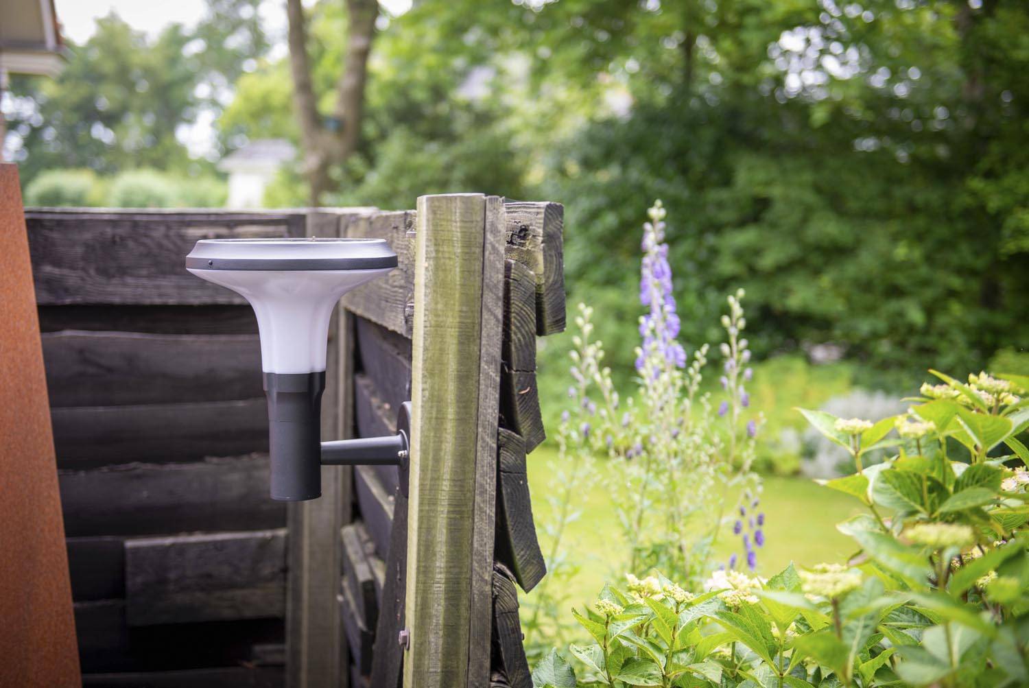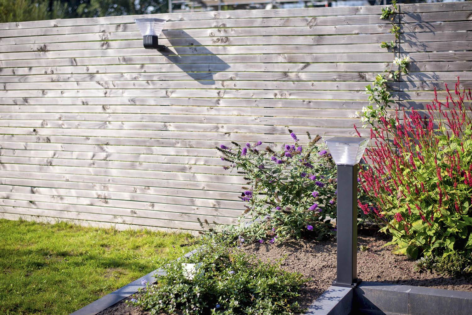 Solar wandlamp aan de schutting