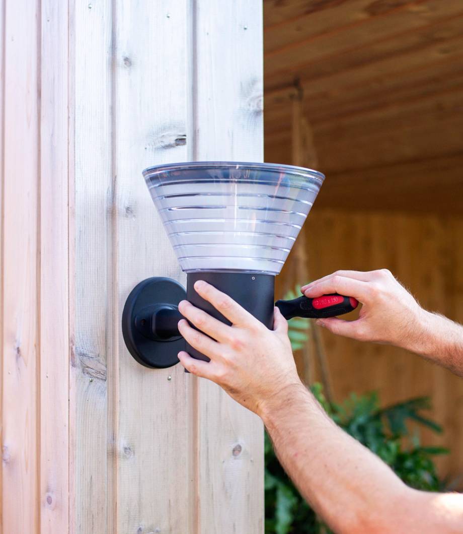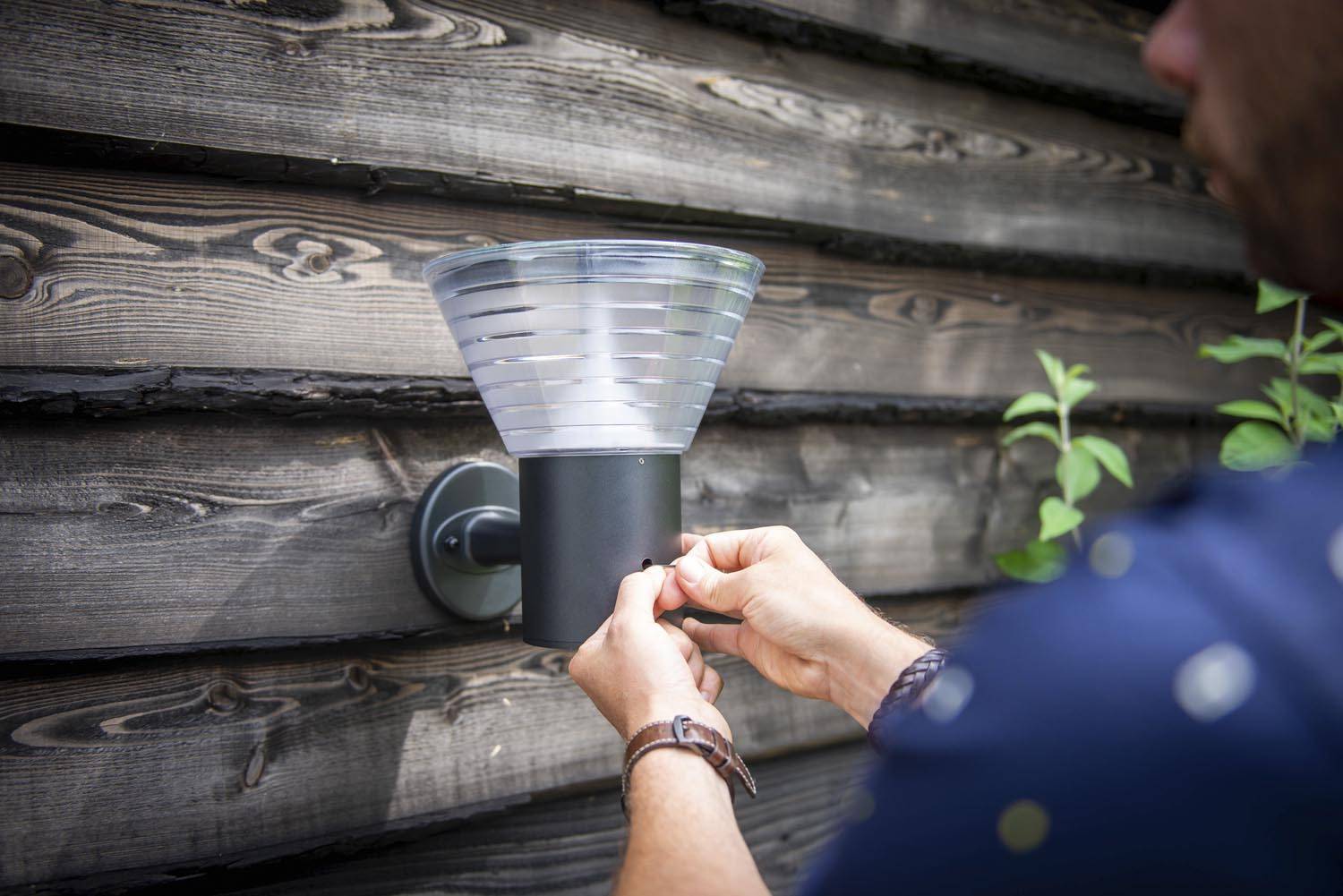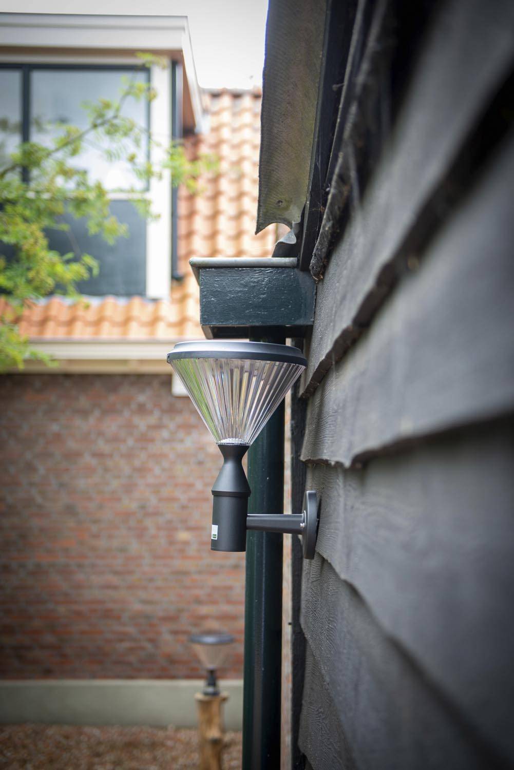 Solar tuinverlichting is beschikbaar in verschillende varianten, waaronder wandlampen. Het voordeel van een wandlamp op zonne-energie is dat u eenvoudig hoogte creëert in de belichting van uw tuin. Gebruik een bestaande schutting, schuur of gevel om de wandlamp te bevestigen. Door het geïntegreerde zonnepaneel is het niet nodig om stroomkabels aan te leggen. Iplux wandlampen werken zonder elektriciteit en zijn daardoor volledig draadloos. Doordat onze producten zijn voorzien van een stralingshoek van 200° wordt er altijd een gelijkmatige belichting afgegeven. Ideaal voor plaatsing: